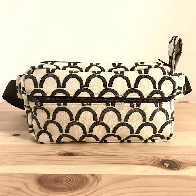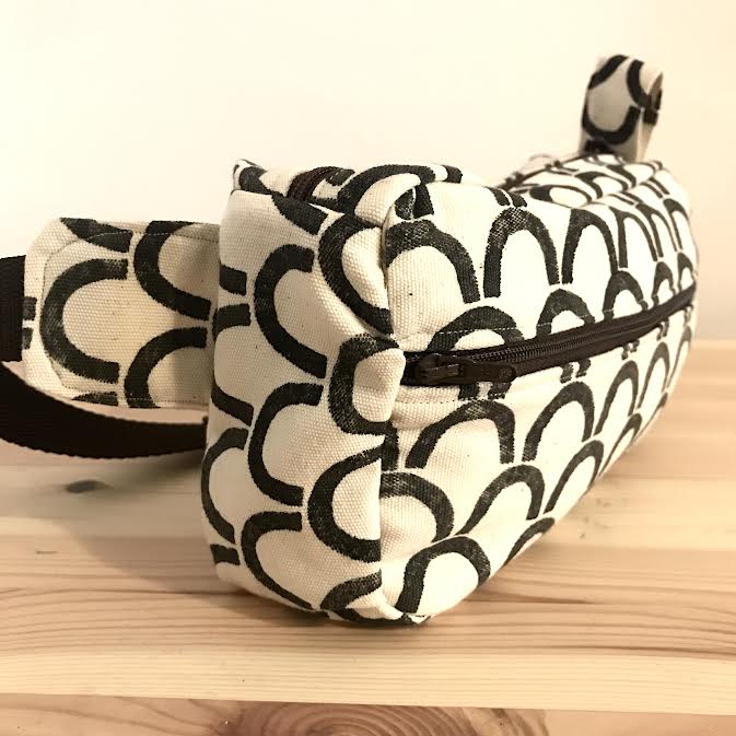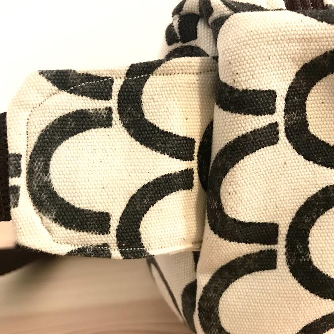 The pattern is black on the warm white of the raw cotton, and the zippers, strap and closure are brown, which I find it's an excellent combination.