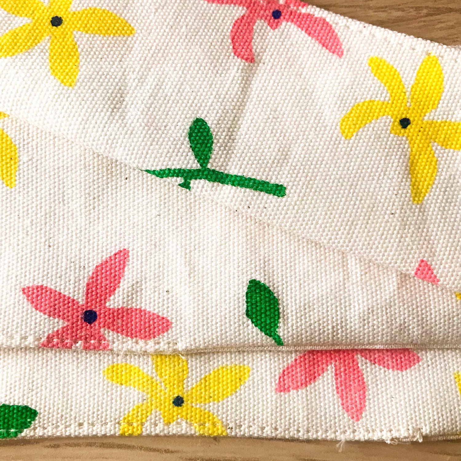 Hand printed pattern with rubber stamps and non toxic inks.